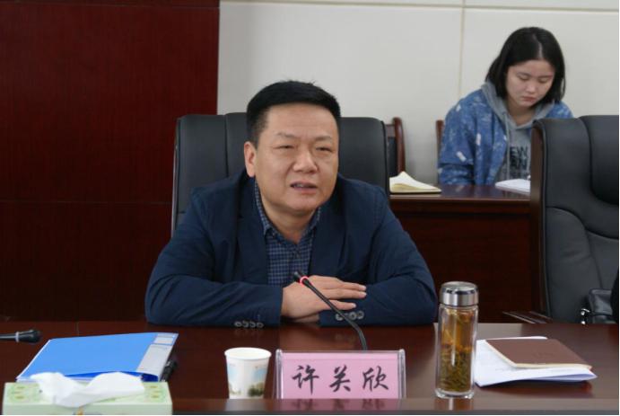 咸宁市房地产管理局党组书记、局长许关欣向检查组做汇报