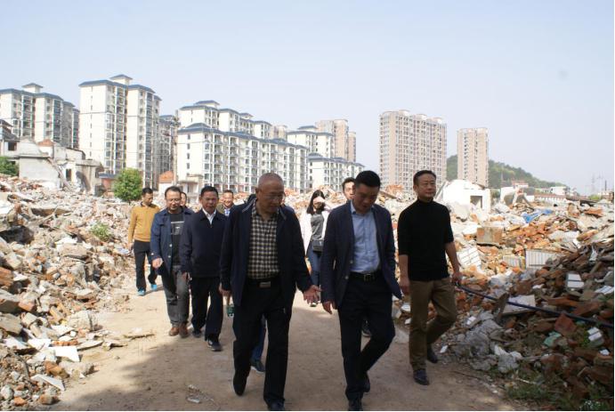 4月16日上午省第三交叉检查组一行到大畈村片区棚户区改造项目现场进行实地考察