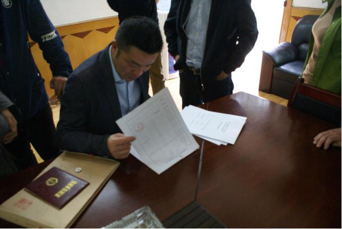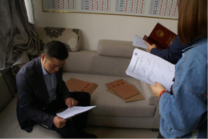4月16日上午省第三交叉检查组组长方卫军在永安同心路片区棚户区改造项目指挥部查阅台帐资料